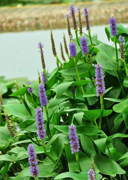 1.这种植物因为它的形态特别,花朵是呈现紫蓝色的颜色,非常淡雅迷人,小花紧凑地长在一条穗上面,十分吸引人注意。想像一下,一湾碧水,绿叶丛生,花朵锦簇,缀于其上,这是何等的醉人美景!