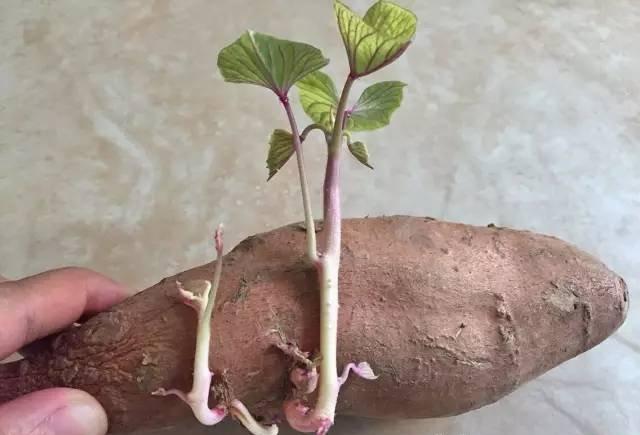2、干了就浇水,过一个星期,就长出薯苗。将薯苗掐下开,种到土里,下面就能长出地瓜了。需要注意的是,生长期少采地瓜叶,要不然地瓜就长不大了哦。